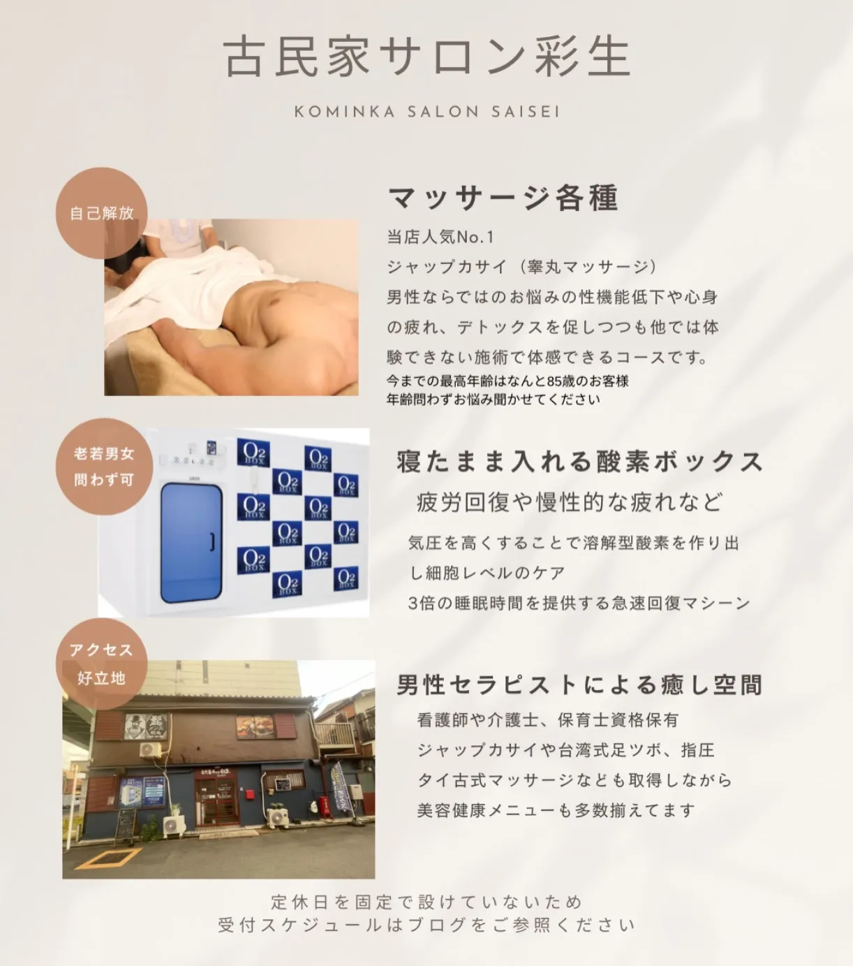 「疲れが取れない男性へ。名古屋・古民家サロン彩生の酸素ボックス×ジャップカサイで体の芯から回復」